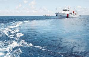 | 中国海事南海联合巡航编队为保障航行安全,保护海洋环境,维护国家主权开展巡航行动。图为2010年“海巡31”和“海巡11”船对南海海域进行巡航时的情景。