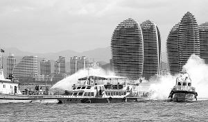 6月26日上午,由三亚市政府主办的“三亚市2012年海上突发事故应急救援演练”在三亚近海海域启动,共有14家单位的16艘船舶参加演练,参演人数230多人。这是三亚第一次进行三位一体、信息化海上突发事故应急救援演练。