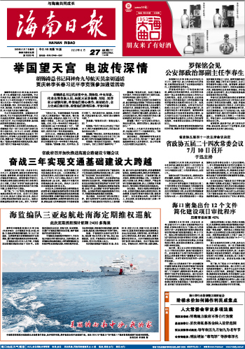 海南日报 头版 001 2012-06-271 2012年06月27日 星期三