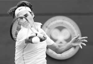 北京时间6月27日晚,在温布尔登网球公开赛第三个比赛日的争夺中,赛会六届男单冠军得主费德勒以6:1/6:3/6:2横扫意大利选手弗格尼尼,强势晋级32强。图为费德勒在比赛中。 新华社发
