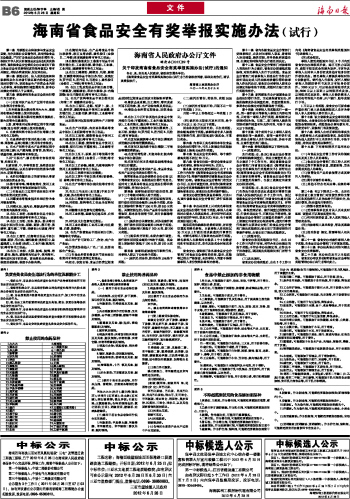 海南省食品安全有奖举报实施办法(试行)