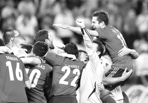 本报讯 卫冕冠军西班牙队尽管在28日的半决赛中遇到血性十足的葡萄牙队的顽强抵抗,被拖入加时赛和点球大战,但最后还是幸运地以4:2胜出、进军欧洲杯决赛。