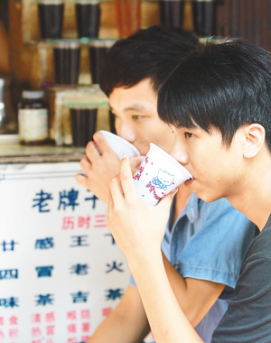 → 6月28日,海口市新华南路老字号凉茶店,随着天气逐渐炎热,凉茶随着热销。