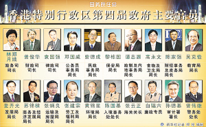 依照香港特别行政区基本法的有关规定,根据香港特别行政区第四任行政长官梁振英的提名,国务院28日任命了香港特别行政区第四届政府3个司12个局,入境处、海关、廉政公署、审计署与警务处等5个部门共20名主要官员的任命,获任命的官员将于今年7月1日起履行职责。
