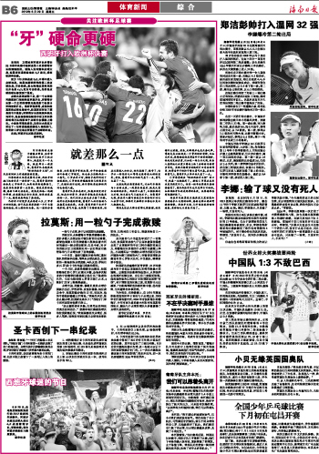海南日报 体育新闻 014 2012-06-291 2012年06月29日 星期五