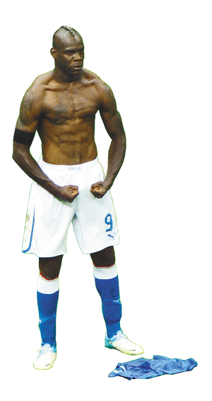 | 巴洛特利进第二个球后脱衣展示肌肉。