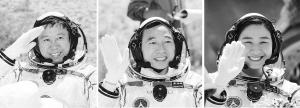 | 这是圆满完成任务的三位航天员刘旺、景海鹏、刘洋(左至右)出舱后向人们致意。 新华社记者王建民摄 |