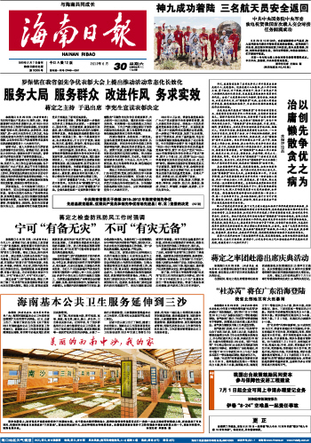 海南日报 头版 001 2012-06-301 2012年06月30日 星期六