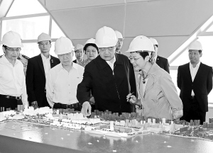 | 6月30日,国家主席胡锦涛在香港考察启德发展计划。这是胡锦涛在新邮轮码头大楼听取启德发展计划、九龙东计划和新邮轮码头建设情况介绍。 新华社发 |