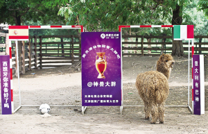 | 6月30日,天津羊驼“大胖”预测意大利队夺冠。 新华社发 |