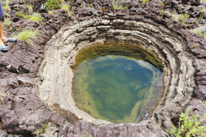 刘疆告诉记者,壶穴这种地貌虽不算罕见,但大多是形成在花岗岩等块状岩石上面的,内壁一般是光滑流线型的,像这样在层状玄武岩中形成的内壁阶梯状或螺纹状的在海南乃至全国都非常少见。