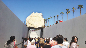 这块《漂浮大石》6月24日亮相,俨然就像一颗飘浮在空中的大石头,成为洛杉矶市的新地标。《飘浮大石》是洛杉矶郡立艺术馆最新的作品, 由当代艺术家黑泽(Michael Heizer)设计雕塑,正式亮相后吸引数百名洛杉矶民众前来观看,成为洛杉矶最著名的石头。