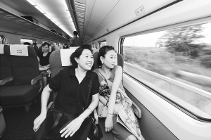 7月1日,家在宜昌的刘倩(右)与妈妈一起乘坐首发的动车前往武汉转乘飞机去南宁旅游,原先需要两天的行程现在当天就可以到达。 当日,连接中国西南的一条重要快速通道(武)汉宜(昌)铁路正式开通运营,这标志着中国酝酿一个多世纪的“川汉铁路”全线贯通。 汉宜铁路的建成,圆了中国铁路建设的百年梦想。早在清朝末年,就有过修建“川汉铁路”的动议。 新华社记者 郝同前 摄