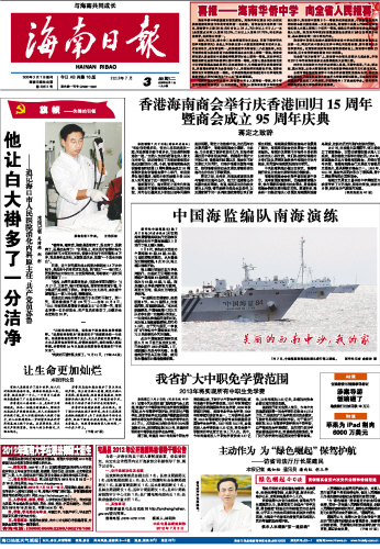 海南日报 头版 001 2012-07-031 2012年07月03日 星期二