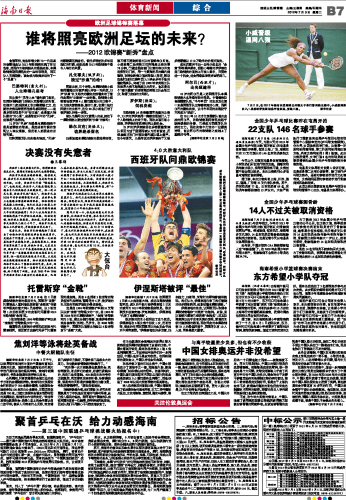 海南日报 体育新闻综合 015 2012-07-031 2012年07月03日 星期二
