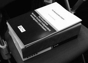 | 在日本东京举行的新闻发布会上拍摄的福岛核电站独立事故调查委员会报告(7月5日摄)。 新华社/路透 |
