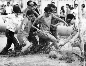 7月5日,2012泥浆足球世界杯中国赛北京站的比赛在北京奥林匹克公园拉开帷幕,共有来自社会各界人士组成的32支球队参加本次比赛的角逐。 新华社发