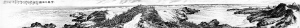 | 关山月1992年创作的反映西沙群岛风貌的巨幅中国画《云龙卧海疆》。 |