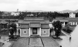 | 盛德堂曾留下胡铨深深的足迹。图为修复中的三亚崖城水南村盛德堂。