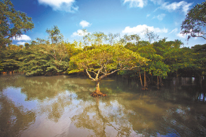 | 文昌八门湾湿地繁衍栖息着鱼、虾、贝类等水生动物,是美食良材。 |