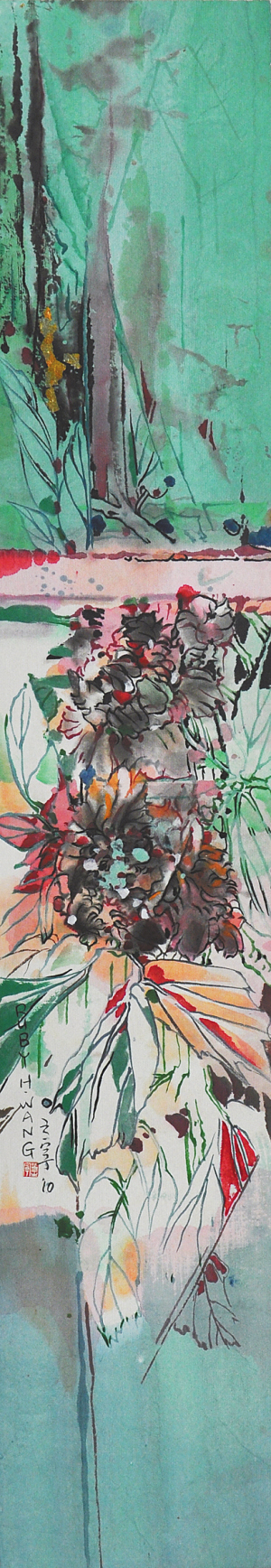 华之宁生于1932年,1956年毕业于台湾师范大学艺术系,为国画大师黄君壁、吴咏香的入室弟子,1957年赴美留学,不曾想此去便是半个世纪之久,时代的变迁,空间的转换,东西方文化的交融,使她在感受内心与外部环境的碰撞中不断创新、突破,她常常把画好的作品撕碎再重新组合,以国画的笔触融汇西方的色彩与线条,效果便如蚕蛹蜕茧成蝶,美轮美奂,引人遐想。