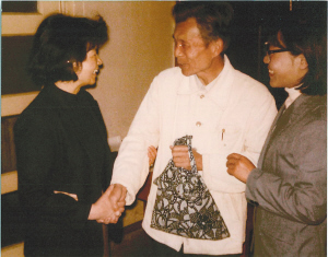 | 1983年华之宁(左)与画家吴冠中合影。 |