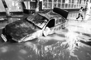 | 街道被洪水淹没。 新华社/法新 |