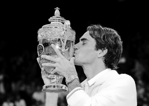 | 费德勒亲吻温网冠军奖杯。 新华社发 |