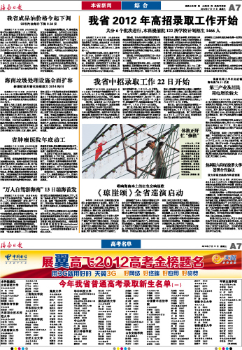 海南日报 本省新闻综合 007 2012-07-111 2012年07月11日 星期三