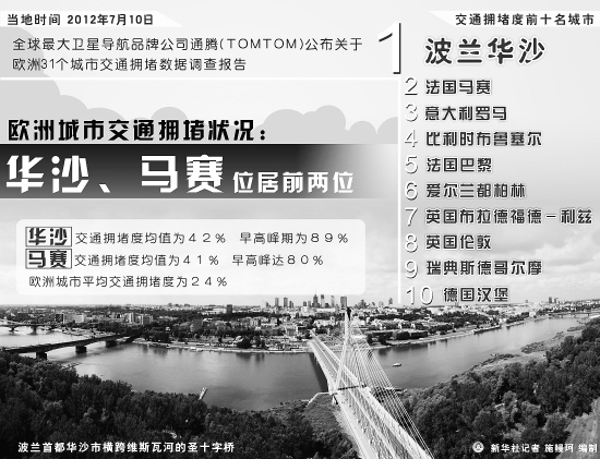 欧洲城市交通拥堵状况:华沙、马赛位居前两位