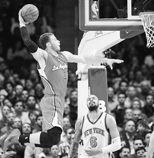 | 格里芬成为联盟中的又一位顶薪球员。图为格里芬(左)暴扣。 小新发 |