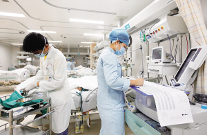 | 在省人民医院重症监护室内,医护人员在监护病人。 本报记者 宋国强 摄 |