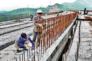 这是工人在承(承德)秦(秦皇岛)高速公路青龙段工地施工(7月4日摄)。 日前,河北省承(承德)秦(秦皇岛)高速公路秦皇岛段17座隧道全部打通,为年底通车夯实了基础。据介绍,承(承德)秦(秦皇岛)高速公路是河北省高速公路网布局规划“五纵、六横、七条线”中的“第一条线”,全长191公里,其中承德段92公里,秦皇岛段99公里,通车后,秦皇岛至承德将由现在的4个小时缩短为2个小时。 新华社发