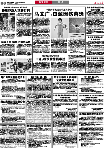 海南日报 体育新闻综合 014 2012-07-121 2012年07月12日 星期四