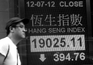7月12日,香港恒生指数下跌394.76点,收报19025.11点。 新华社记者 吕小炜 摄