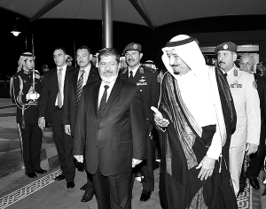 在穆巴拉克统治时代,埃及和沙特保持着紧密关系。但今年4月埃及和沙特出现了历史上少见的关系紧张,因沙特逮捕了一名埃及律师引发埃及民众强烈抗议,沙特随后召回驻埃大使并关闭了驻埃使领馆数天。这一事件和长期受打压的穆尔西领导的穆斯林兄弟会上台执政为未来埃及与沙特和其他海湾阿拉伯国家之间的关系产生疑问。