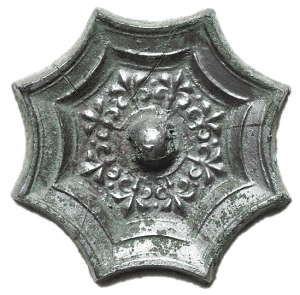 从造型和装饰上看,唐镜既端重厚实,又新颖别致。唐镜最显著的工艺特征在于镜背的纹饰多为高浮雕,给人以极强的立体感。唐代铜镜还打破了传统圆形、方形的框框,开始铸造八角、八弧、海棠花、菱花等式样铜镜,有柄铜镜也开始出现。