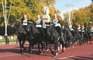 | 伦敦白金汉宫外准备换岗的皇家卫队。