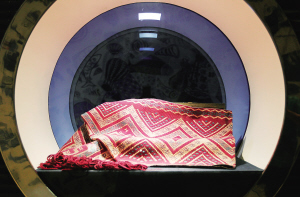 7月15日,灿若云霞的非遗纺织品———海南黎锦亮相丽水世博会。   本报特派记者 苏晓杰 摄