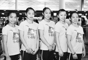 7月15日,中国体操女队从北京前往伦敦,后转道北爱尔兰与先期抵达的体操男队汇合,进行伦敦奥运会前最后的适应性训练。图为国家体操女队队员出发前合影。 新华社发