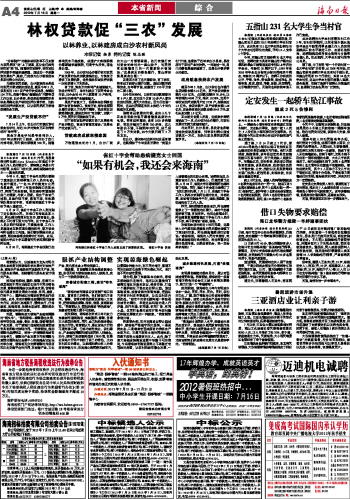 海南日报 本省新闻综合 004 2012-07-161 2012年07月16日 星期一