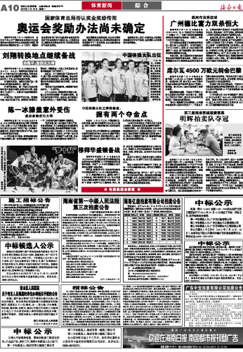 | 海南日报 体育新闻综合 010 2012-07-161 2012年07月16日 星期一 |