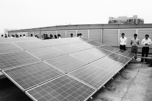 | 业内人士分析,受国际环境影响,光伏组件成本仍在大幅下降,为企业在海南发展光伏发电提供了新的机遇。图为海南生态软件园一期光电建筑一体化示范工程安装在屋顶上的太阳能光伏系统。
