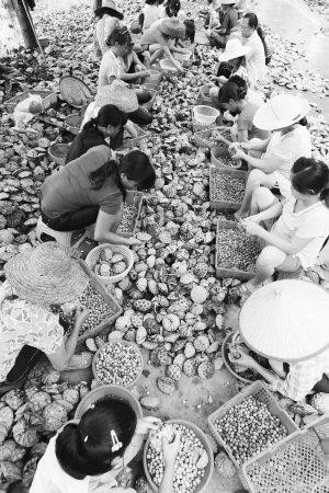 雅儒村村民们在剥莲子。