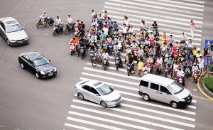 7月16日,海口龙昆南路大转盘处,川流不息的电动车。据不完全统计,海口市目前有30多万辆电动车,随着电动车数量剧增,违章行驶电动车已成为海口交通的一大隐患。 为了营造一个安全交通环境,从17日开始,海口市公安局、市城市管理行政执法局、市交通运输和港航管理局将联合开展为期3个月的电动车违法行为整治行动,对无牌无证上路、闯红灯、逆行等违法行为一律按上限从重处罚。 张茂 摄