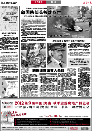 海南日报 世界新闻综合 012 2012-07-191 2012年07月19日 星期四