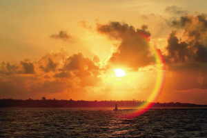 今天早上6时50分,我们乘坐的中国渔政306船慢慢进入西沙永兴岛港口。经过一个晚上在汪洋中的颠簸,这个无数次在我梦境里出现过的海岛,在万丈霞光中,如梦如幻地展现在我的镜头里。