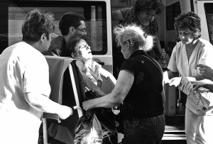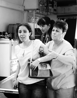 | 一名受伤的女子接受医护人员的救治。 新华社/法新