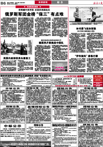 海南日报 体育新闻综合 014 2012-07-201 2012年07月20日 星期五