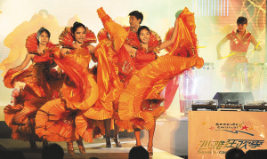 紧接着,一支狂热的DJ舞曲,把现场观众的热情再次调动起来,舞者倾情演绎着人们在沙滩上自由玩耍、尽情欢呼的场景,使观众领略到沙滩的无限魅力。同时,在台下观众热情的欢呼声中,伴随着悠扬的小提琴伴奏,10位身着比基尼的模特为现场观众带来了一场精彩的模特秀,曼妙的舞姿、婀娜的体态,引来了无数尖叫声和掌声,将整场晚会推向又一个高潮。